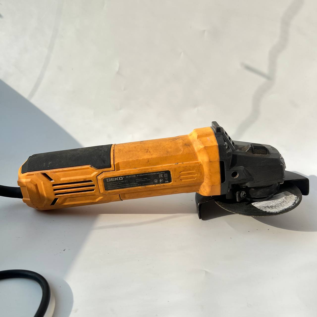 УШМ Deko DKAG1250 — электроинструмент, работающим за счет двигателя с угольными щетками. Предназначена для разрезания и шлифования камней, керамических изделий и металлов с использованием соответствующих насадок. Диск, который служит рабочим элементов, прикрыт ударопрочным кожухом — он защищает оператора. Регулировка скорости позволяет выполнять задачи разной сложности и добиваться максимально точного результата. Двухпозиционная рукоятка обеспечивает удобство работы. Для работы углошлифовальной машины требуется подключение к электросети. Эргономичный корпус не скользит в руке, что обеспечивает максимальный контроль над инструментом. ### Особенности: - большая мощность — 1250 Вт; - диаметр диска составляет 125 мм; - число оборотов достигает 11000 об/мин; - длина сетевого кабеля — 2 м; - высокая производительность; - большой ресурс работы