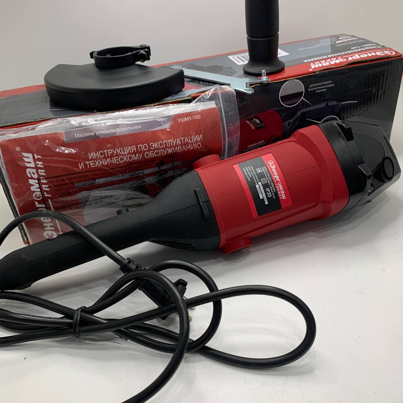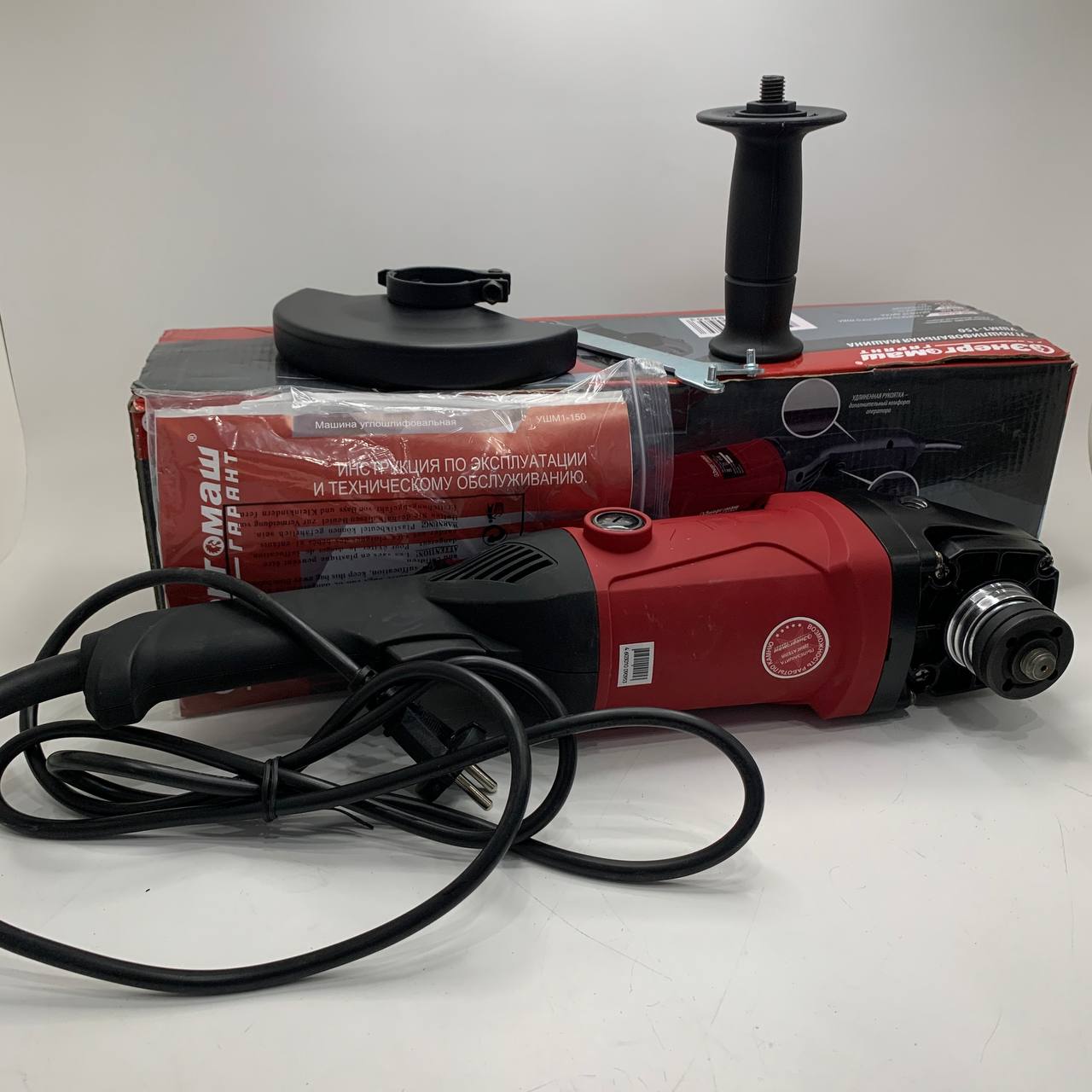 Гайки для крепления диска, комплект щеток, дополнительная рукоятка, ключ, защитный кожух в комплекте.