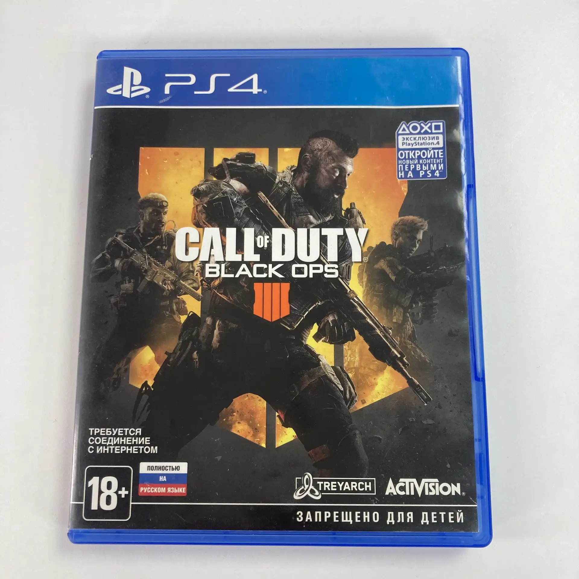 Call of Duty: Black Ops 4 на PlayStation 4 – это возвращение жестоких и кровопролитных побоищ в режиме онлайн, сразу три истории о сражениях с мертвецами: «Кровь мертвецов», «Рейс отчаяния», «IX», и уникальный режим «Затмение», который погрузит вас в атмосферу великой «королевской битвы», развивающейся на самой большой карте за всю историю игры и позволяющей вам применять всевозможные виды техники, даже морскую и воздушную.